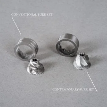 The conventional burr is more suitable for grinding coarse powder, such as powder for pour-over, drip coffee and french press. Can be washed in water without rust.